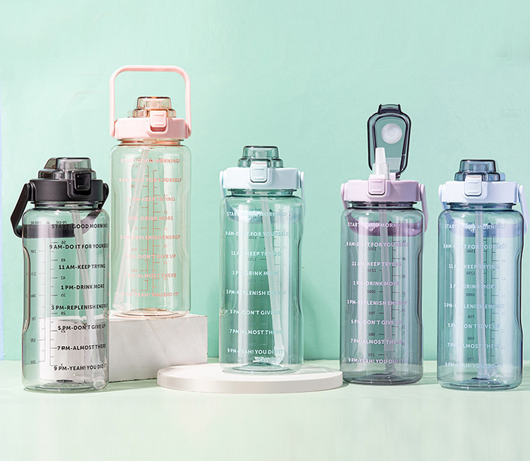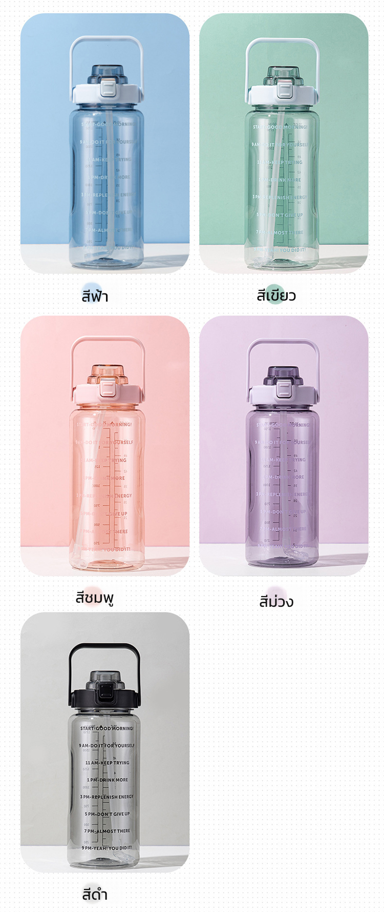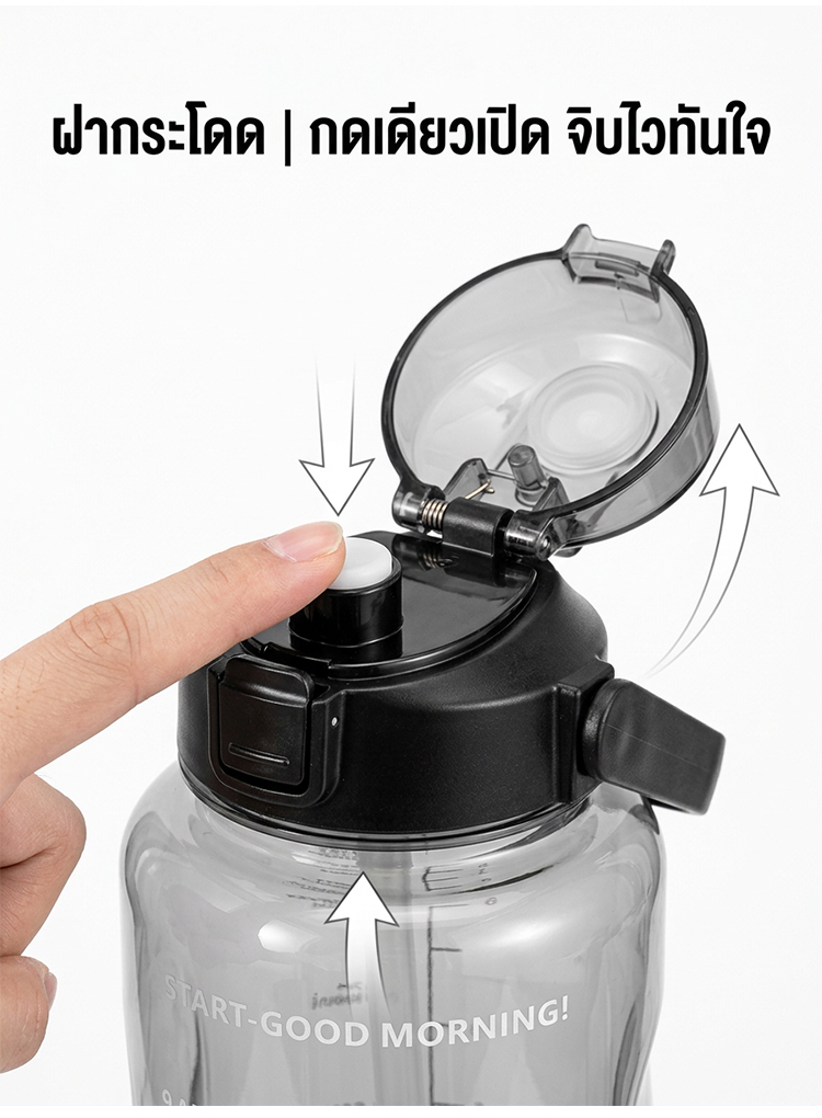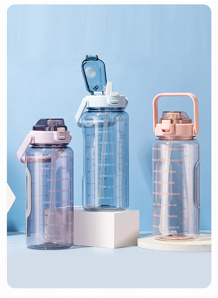 ขวดน้ำ 2 ลิตร พร้อมหลอดในตัว มีสเกลบอกเวลา ช่วยเตือนดื่มน้ำ ปลอดสาร BPA ทนทาน
